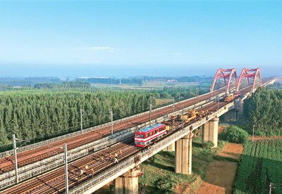 9月20日,河南郑州200余名铁路职工利用大型养路机械车集中更换郑焦城际铁路黄河大桥京广铁路区段的无缝线路钢轨。这是该桥自2014年5月投用以来首次进行换轨施工。据了解,该桥京广铁路区段共计11.28公里的服役到期钢轨将被分段更换,为旅客安全出行提供坚实保障。图为当日换轨施工现场。