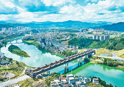 9月17日,广西壮族自治区柳州市三江侗族自治县,宜阳风雨桥横跨浔江。该桥使用国家级非遗侗族木构建筑营造技艺,集亭、塔、廊、檐等于一体,自2022年11月建成通车以来吸引了众多游客。近年来,三江侗族自治县坚持“生态立县、旅游富民”,依托特色资源,大力发展乡村旅游,推进乡村振兴。