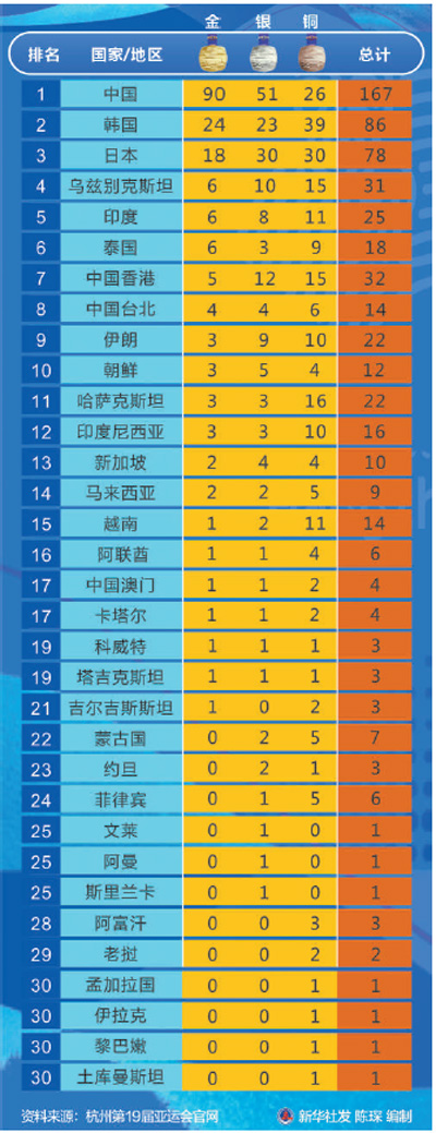 杭州亚运会奖牌榜