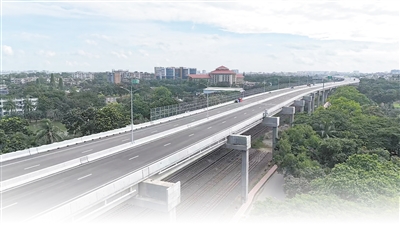 由中国山东高速集团主导投资建设运营的孟加拉国首条高架快速路——达卡机场高架快速路项目(一期)通车仪式9月2日在孟加拉国首都达卡举行。项目通车后极大改善了达卡市区交通状况。图为孟加拉国达卡机场高架快速路项目(一期)远景。 |