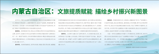 重特色。以打响“北疆文化”品牌为抓手,大力发展非遗、民俗、美食等特色产品并融入乡村旅游,不断丰富乡村旅游产品内涵。通过举办那达慕大会、采摘节、冰雪节、露营大会等节庆活动增强影响力,着力培育乡村旅游特色品牌,成功创建全国乡村旅游重点村36个、重点镇(乡)6个。