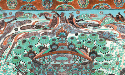 莫高窟第320窟南壁《散花飞天》局部。 |