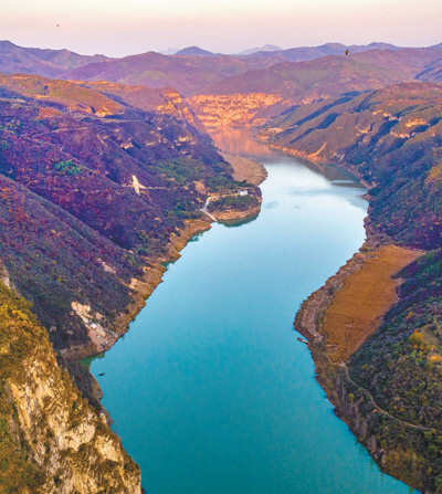 山西省运城市境内的黄河岸边,黄河一号旅游公路与山水交相辉映,构成一幅美丽画卷。 薛 俊摄(影像中国)