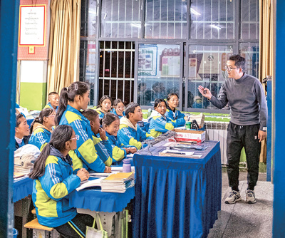 近年来,西藏全面落实农牧民子女“上学无负担”措施,农牧民子女受教育水平显著提升。党的十八大以来,西藏已8次提高经费标准,累计投入220.67亿元,受益学生达655.08万人次。目前,每年每个学生平均经费已经达到4200元,学生可以享受到的资助政策达到42项。图为拉萨市当雄县中学八年级六班学生正在上课。