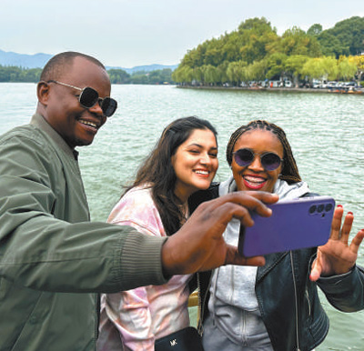 10月13日,代表团成员在浙江省杭州市西湖景区合影留念。 |