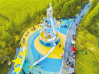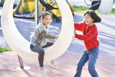 浙江省宁波市滨江水韵公园里,孩子们在优美环境中快乐游玩。 |