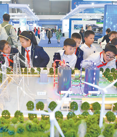 学生在参观科博会的科普馆。 |