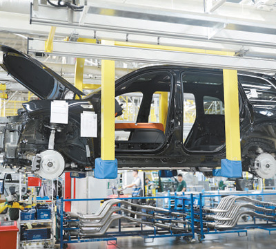 理想汽车常州制造基地总装车间内,一辆新能源汽车在装配线上。 |