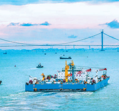 沉管浮运安装一体船“一航津安1”号。 |