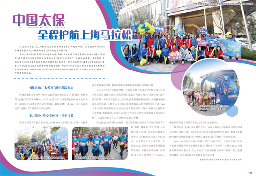 中国太平洋保险(集团)股份有限公司(简称“中国太保”)作为本届上海马拉松官方赞助商,携手旗下长江养老保险股份有限公司(简称“长江养老”),全程服务赛事。赛事期间,中国太保为2023上海马拉松提供总保额近200亿元的一揽子风险保障,覆盖4.5万名跑者和赛事工作者,组建上海马拉松赛事理赔服务团队,开通95500上海马拉松双语服务专线和理赔服务绿色通道,同时还组织150余名的志愿者服务团队全程服务,于沿途设置水站、加油站,为跑者喝彩助威。
