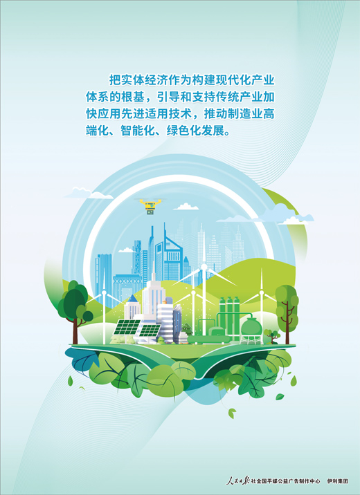 把实体经济作为构建现代化产业体系的根基,引导和支持传统产业加快应用先进适用技术,推动制造业高端化、智能化、绿色化发展。