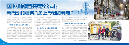 2023年,国网保定供电公司系统塑造兼具保定特色和电力特点的“办电五优、保您无忧”营商服务品牌,努力实现“时长优、成本优、流程优、供电优、服务优”的“五优服务”,更好服务保定经济社会发展。