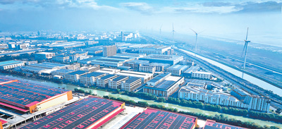 浙江省海宁市是分布式光伏起步较早、发展较快的地区之一,近年来,在国网浙江电力技术支持下,当地创新构建新型电力系统,“集零为整”,实现绿色能源的源网荷储一体化调控。图为海宁尖山示范区布设的大片企业屋顶光伏。