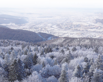 伴着阵阵松香,银装素裹的万顷林海闯入视野。在小兴安岭腹地,连绵的林海环绕着小城伊春。