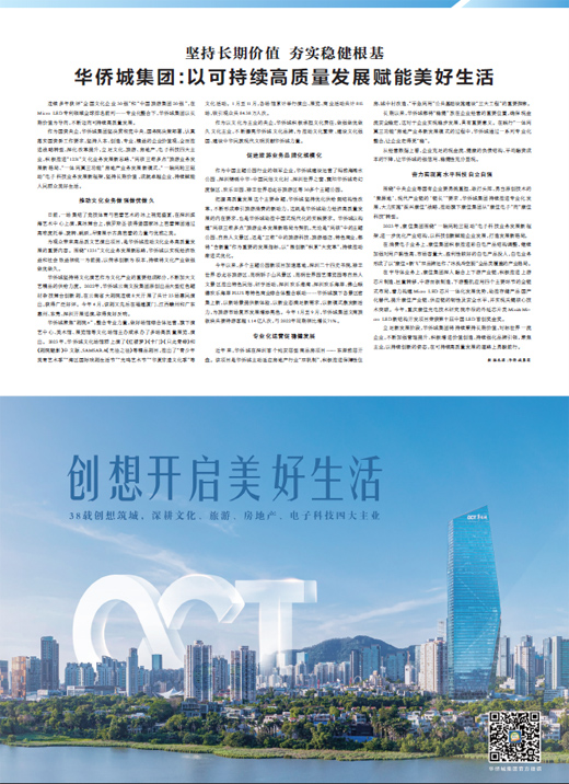 立足新发展阶段,华侨城集团将持续秉持长期价值,对标世界一流企业,不断加强管理提升、积极增进价值创造、持续强化品牌引领,聚焦主业,以持续创新的姿态,在可持续高质量发展的道路上勇毅前行。