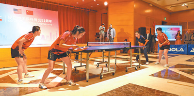本报华盛顿12月14日电 (记者李志伟)当地时间12月13日晚,中国驻美国大使馆举办活动,纪念中美“乒乓外交”52周年。中国驻美国大使谢锋在致辞中回顾了上个月成功举行的中美元首会晤,强调以“乒乓外交”为代表的人文交流对中美关系的历史、现在与美好未来的重大意义。