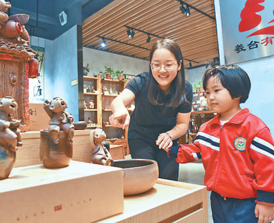 河北省新乐市,市民在参观文创作品。 |