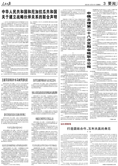 中华人民共和国和尼加拉瓜共和国关于建立战略伙伴关系的联合声明