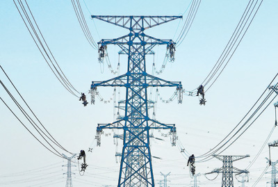 12月21日,电力工人在位于宁夏吴忠市境内的贺兰山—典农220千伏线路工程1—4号铁塔安装间隔棒。当日,随着电力工人将铁塔线路附件全部安装完毕,该工程总长73.9公里的输电线路全部贯通完成,为年底建成投运打下坚实基础。