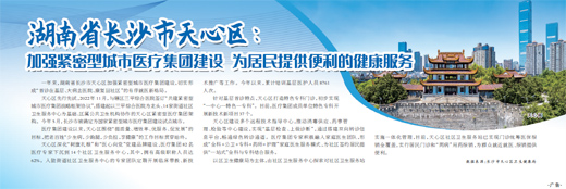 天心区先行先试,2022年11月,与辖区三甲综合医院签订“共建紧密型城市医疗集团战略框架协议”,搭建起以三甲综合医院为龙头、14家街道社区卫生服务中心为基础、区属公共卫生机构协作的天心区紧密型医疗集团架构。今年5月,长沙市被确定为国家紧密型城市医疗集团建设试点城市。