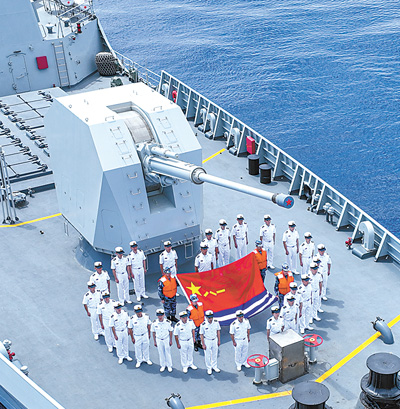 在亚丁湾,高扬五星红旗的中国海军护航编队,以其负责态度和过硬素质,成为一支值得信赖的和平力量。