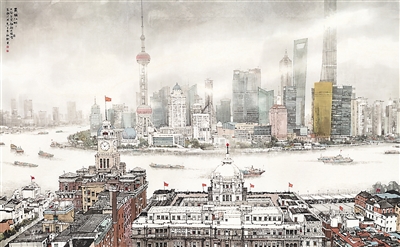 新时代长江气象万千。在重庆市文化和旅游发展委员会、重庆市文学艺术界联合会等单位主办的“2022同源·同向——长江流域十三省市自治区美术作品邀请展”上,庞茂琨油画《辉耀九龙》、徐君华粉画《浦江之梦》等作品,以充满诗意的语言展现了日新月异的城乡面貌与丰富多彩的现实生活。近年来,一批重大工程的实施,为百姓生活带来便利,使长江流域涌动活力。一些美术工作者充分发挥视觉艺术的力量感,反映长江流域建设成就。比如,贺思恩版画《蓄势——破译雅砻密码》依托丝网版画色彩表现力较强的艺术特色,以俯瞰视角,展现了长江流域水电站的时代风采。