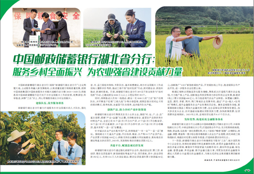 中国邮政储蓄银行湖北省分行(简称“邮储银行湖北省分行”)立足荆楚大地,主动服务和融入新发展格局,以高质量党建引领高质量发展,按照中国邮政集团《中国邮政服务乡村振兴战略行动方案(2023—2025)》,积极落实中国邮政储蓄银行总行关于乡村全面振兴工作的安排,统筹谋划、科学推进,深耕“三农”沃土,用心用情服务湖北乡村全面振兴。