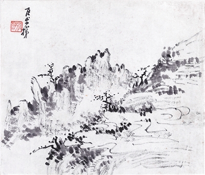 中国画《百步梯》,作者黄宾虹,中国美术馆藏。