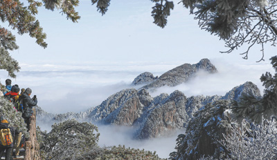 近日,游客在安徽省黄山风景区欣赏雪后美景。 |