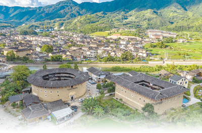 南靖县璞山村的翠美楼(左)和进士楼(右)。 |