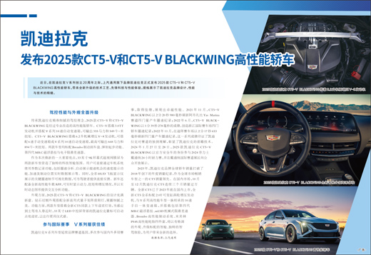 近日,在凯迪拉克V系列创立20周年之际,上汽通用旗下品牌凯迪拉克正式发布2025款CT5-V和CT5-V BLACKWING高性能轿车,带来全新升级的技术工艺、先锋科技与性能体验,提炼展示了凯迪拉克品牌设计、性能与技术的精髓。