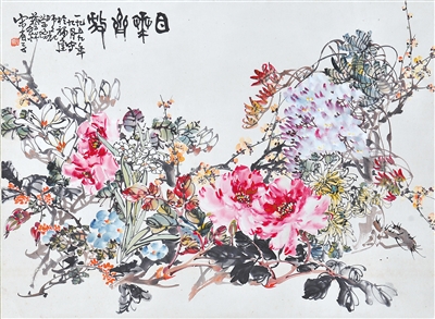 中国画《百花齐放》,作者宋省予,福建省美术馆藏。