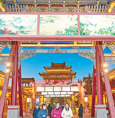 日前,“双宁灯会”在江苏南京和青海西宁拉开帷幕,“秦淮灯会”和“湟源排灯”两项国家级非物质文化遗产在南京老门东历史文化街区和西宁湟源县丹噶尔古城同时亮相,为新春佳节营造欢乐祥和的氛围。图为游客在丹噶尔古城拱海门附近欣赏“湟源排灯”。
