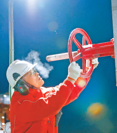 渤海湾埕北油田海上采油平台,工人正在忙碌。 |