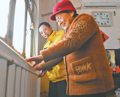 山东聊城市东昌府区王化村,供热企业员工为村民检查暖气。 |