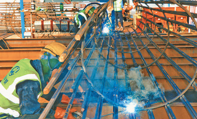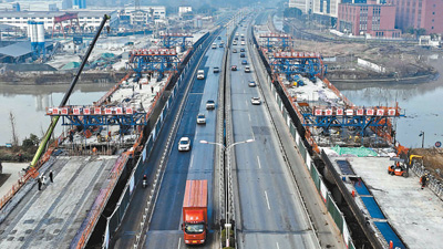 示范区优化区域交通路网,城乡交通一体化不断深入,群众出行便利度进一步增强。图为平黎公路嘉善段改(扩)建工程桥梁建设现场。 |