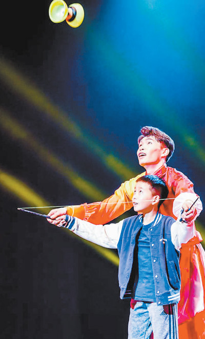 “四海同春”访演活动近日在新西兰举行。图为中国铁路文工团杂技演员教现场观众抖空竹。