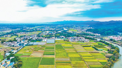 近日,在江西省赣州市大余县青龙镇,田园与道路、房屋构成一幅美丽的田园风光画。近年来,大余县扎实推进高标准农田建设,不断夯实粮食生产基础,提升粮食综合生产能力,有效促进农村经济社会发展和农民增收致富。
