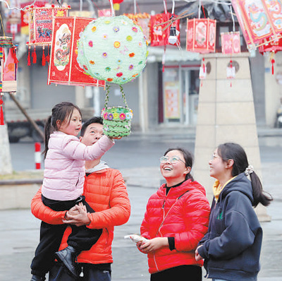2月20日,市民在浙江湖州市德清县乾元镇北郊社区赏灯。 |