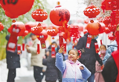 2月24日,正月十五,各地群众赏花灯、猜灯谜、品元宵……在丰富多彩的活动中欢度元宵佳节、共庆团圆。图为当日,山东省滕州市美术馆,小朋友在参与元宵节趣味活动。