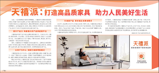 作为国民家居品牌,天禧派以产品为本,以用户为先,专注设计,推陈出新,持续探索产品销售新模式,关注消费者需求,全力践行“让大众轻松享受高品质的全屋家居空间”的品牌使命,助力家居行业高质量发展。