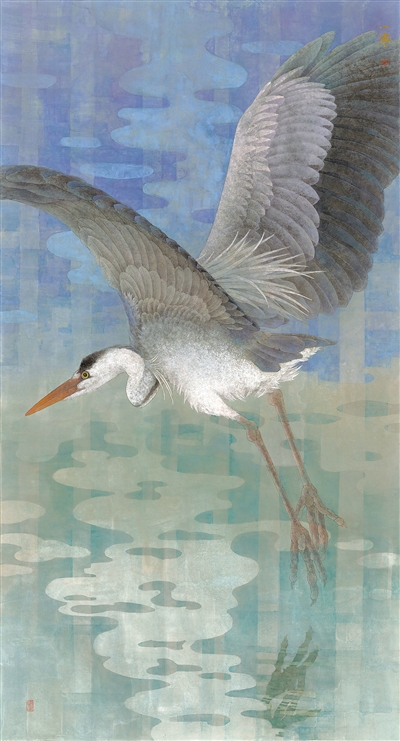 中国画《青鹭》,作者万小宁。 |