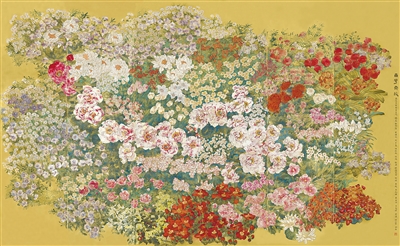 中国画《百花齐放》,广东画院集体创作。 |