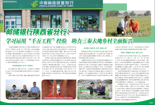中国邮政储蓄银行陕西省分行(简称“邮储银行陕西省分行”)积极学习运用“千万工程”经验,以科技金融构建“金融+产业+生态”服务模式,将金融活水引入农业农村发展重点领域和薄弱环节,切实当好服务乡村全面振兴生力军。截至2023年末,邮储银行陕西省分行个人经营性贷款居陕西省商业银行前列,向农村农户、商户、新型农业经营主体等累计发放个人小额贷款超过1900亿元,惠及各类群体超过33万余户。