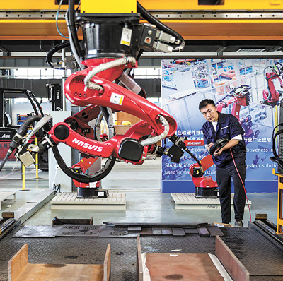 辽宁沈阳新松机器人自动化股份有限公司调试车间,工业清洁机器人不仅能自主规划作业路径,还会主动避让其他机器人和各种障碍;焊接机器人舞动机械臂,在大负载的同时完成精细至微米的点焊作业;汽车底盘合装机器人则稳稳托举汽车零部件,精准装配一气呵成……完成调试之后,这些机器人产品将发往各地。