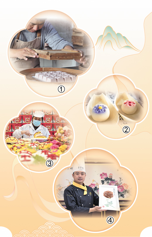 图①:上海市青浦区非遗传承人杨勤峰为练塘糕团脱模。 |