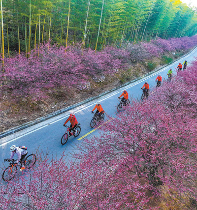 浙江省湖州市长兴县龙山街道川步村,骑行爱好者在龙山绿道骑行锻炼。 陈海伟摄(影像中国)