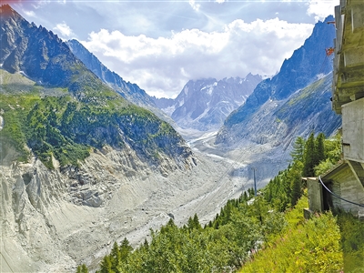 受气候变暖影响,阿尔卑斯山区第三大冰川“冰海冰川”消融严重。 |