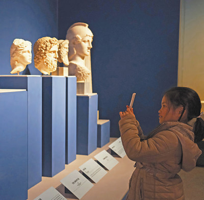 “神话国度 璀璨爱琴海——古希腊文明史诗”展于2023年12月19日在湖南博物院开幕。这是观众在欣赏古希腊文物。 |