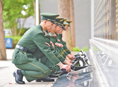 武警重庆总队某支队组织官兵到当地的邱少云烈士纪念馆开展祭扫活动。 王 肸摄(新华社发)